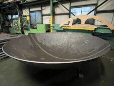 現地プラント設備に向け、陸送できない大型半球については分割・プレス加工する必要があります。