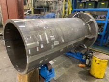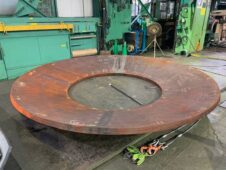 化工機・産業用機械・インフラ設備などに使用される円錐や胴曲げですが、厚板プレス工業は2,500tonをはじめとする4台の油圧プレスで極厚の円錐やパイプのプレス加工が可能です。