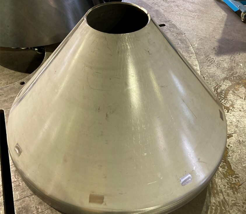 タンク下部に使用されることで粉体の撹拌に使用され、このように通常のコニカルではなくRがついた特殊な形状になります。